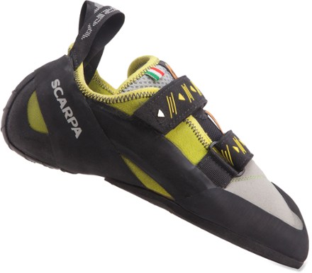 FEATURES of the Scarpa Vapor V Climbing Shoe, Bi-Tension active randing system, provides maximum toe power, Dual powerstrap closure, Vibram XS Edge, provides incredible grip and durability ... View Video